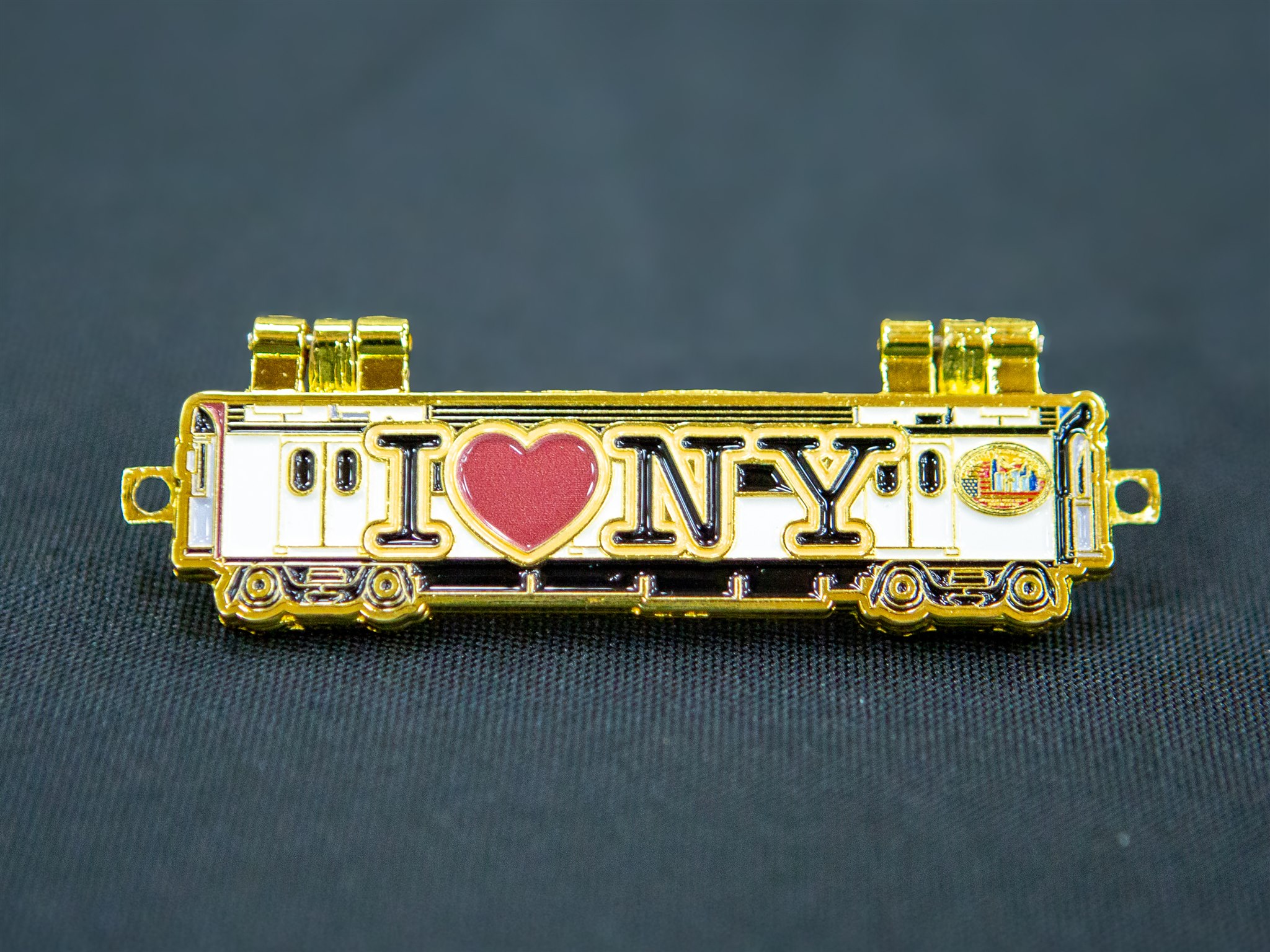 Authentic Flip Pin in White with I Love NY. Inside says "Welcome to the Neighborhood." Created for the "Believe the Promise" 2024 International Pathfinder Camporee.